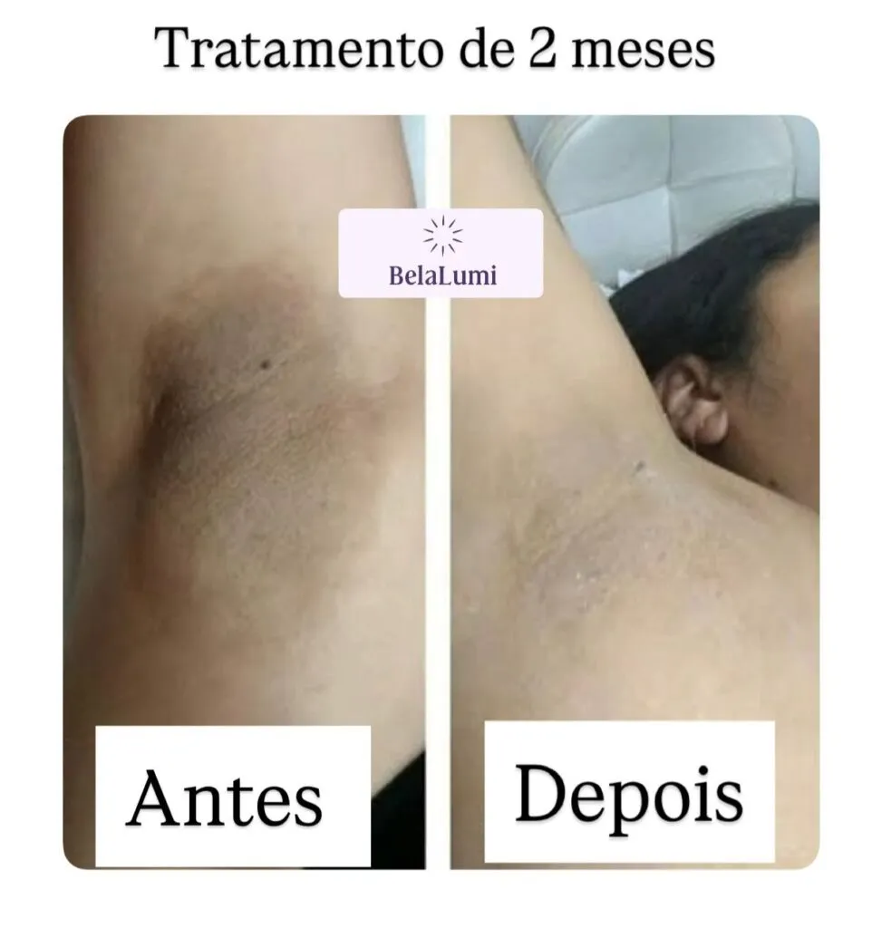 Pode ser usado em axilas, virilha, entre as pernas, joelhos, cotovelos e outras áreas escurecidas.